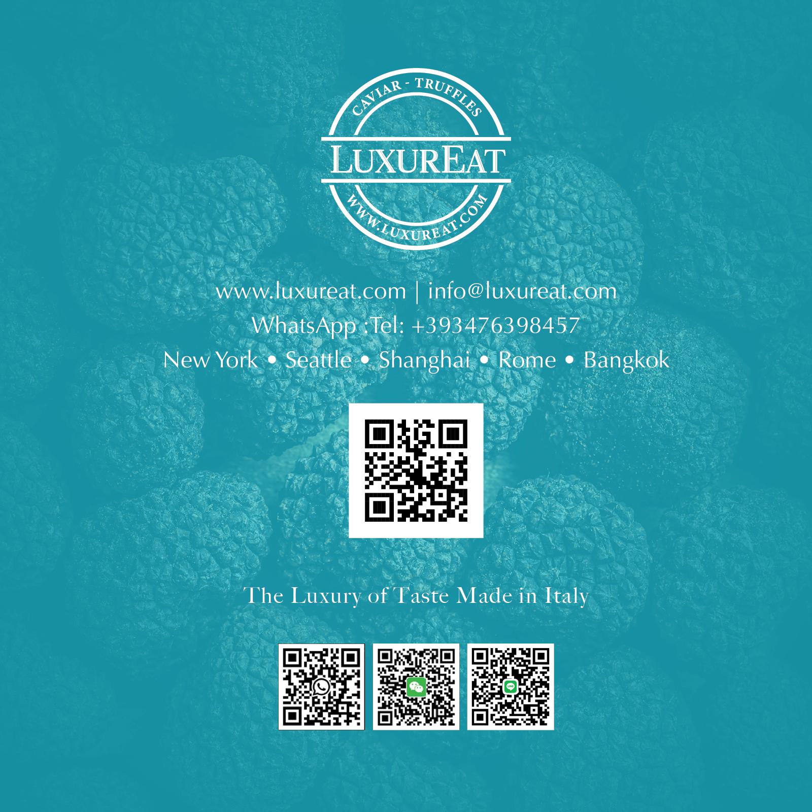 LuxurEat rappresenta il vero Made in Italy nel luxury food, apprezzato e distribuito in Europa, Stati Uniti, Asia e Medio Oriente, come simbolo di eccellenza gastronomica e affidabilità.